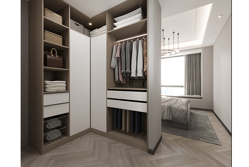 產(chǎn)品亮點(diǎn):“門板收納系統(tǒng)”對(duì)空間有效分割,可以收納帽子、領(lǐng)帶等物品,整齊美觀