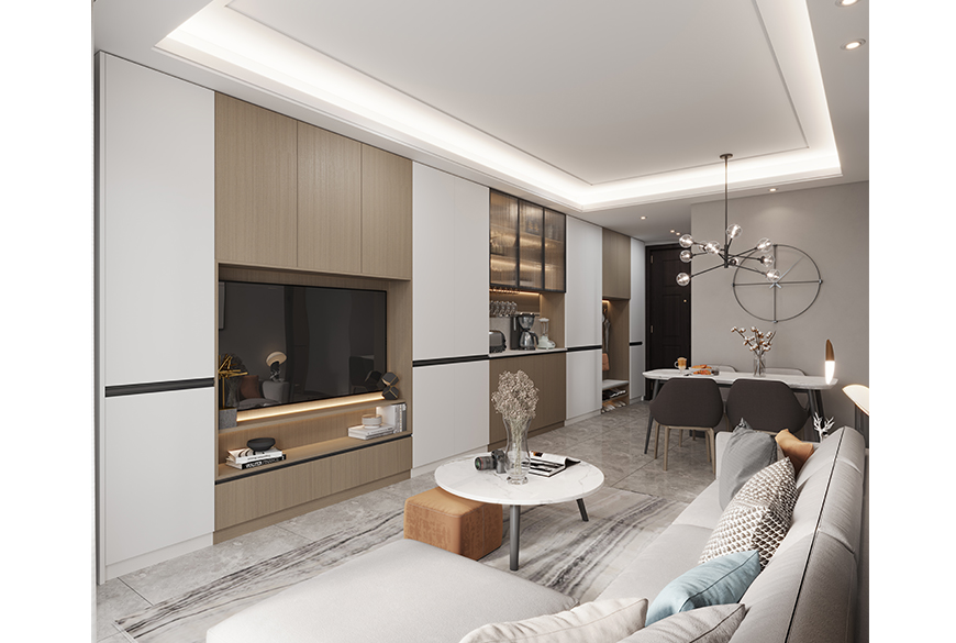 產(chǎn)品亮點(diǎn):“一字”空間設(shè)計(jì),運(yùn)用“虛實(shí)結(jié)合”、“材質(zhì)過渡”、“陳列”、“對(duì)稱”的設(shè)計(jì)手法,減少沉悶感,達(dá)到整體和諧美觀的效果